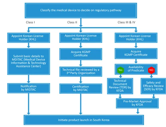 韩国拥有先进的医疗体系。为了适应不断改善的健康监测和诊断,韩国进口了大部分医疗设备。必须进入当地医疗器械当局的医疗器械信息和技术中心(MDITAC)的市场批准,该机构必须在食品和药物安全部(MFDS)的管理下才能进入韩国医疗器械市场。